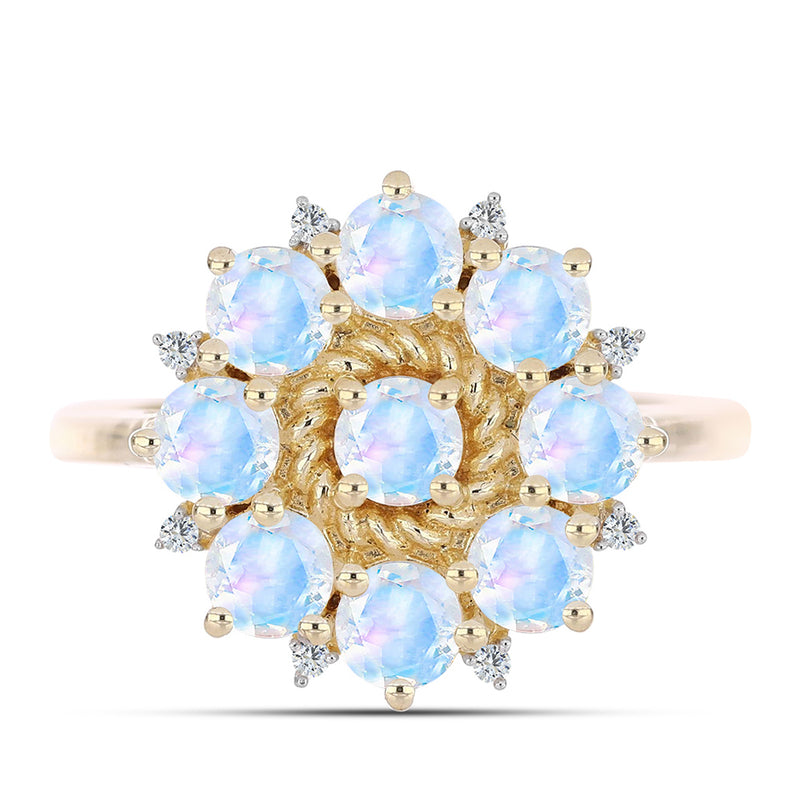Arannyal Bevont Ezüst Gyűrű Szivárvány Holdkővel és Fehér Topázzal