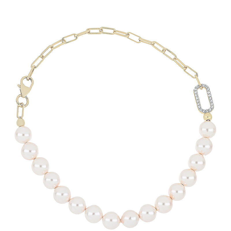 Arannyal Bevont Ezüst Karkötő Barack színű Édesvízi Kagylógyönggyel és Fehér Topázzal