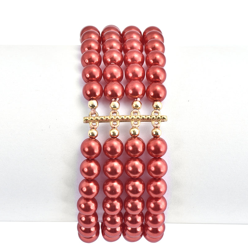 Arannyal Bevont Ezüst Karkötő Vörös Édesvízi Kagylógyönggyel