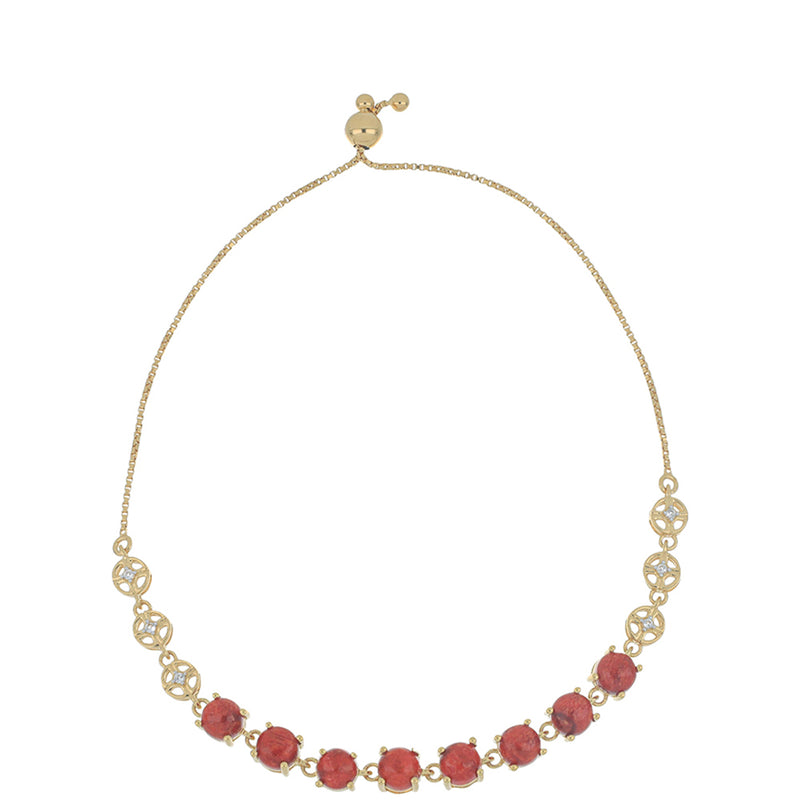 Arannyal Bevont Ezüst Karkötő Vörös Szivacs Korallal és Fehér Topázzal