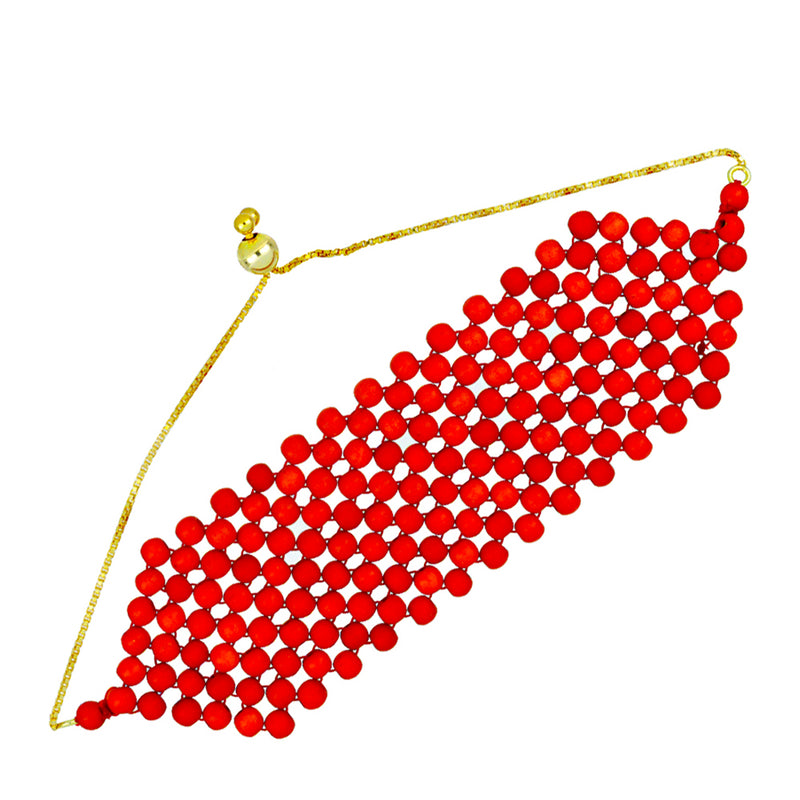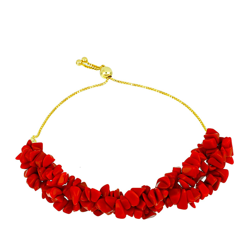 Arannyal Bevont Ezüst Karkötő Vörös Szivacs Korallal