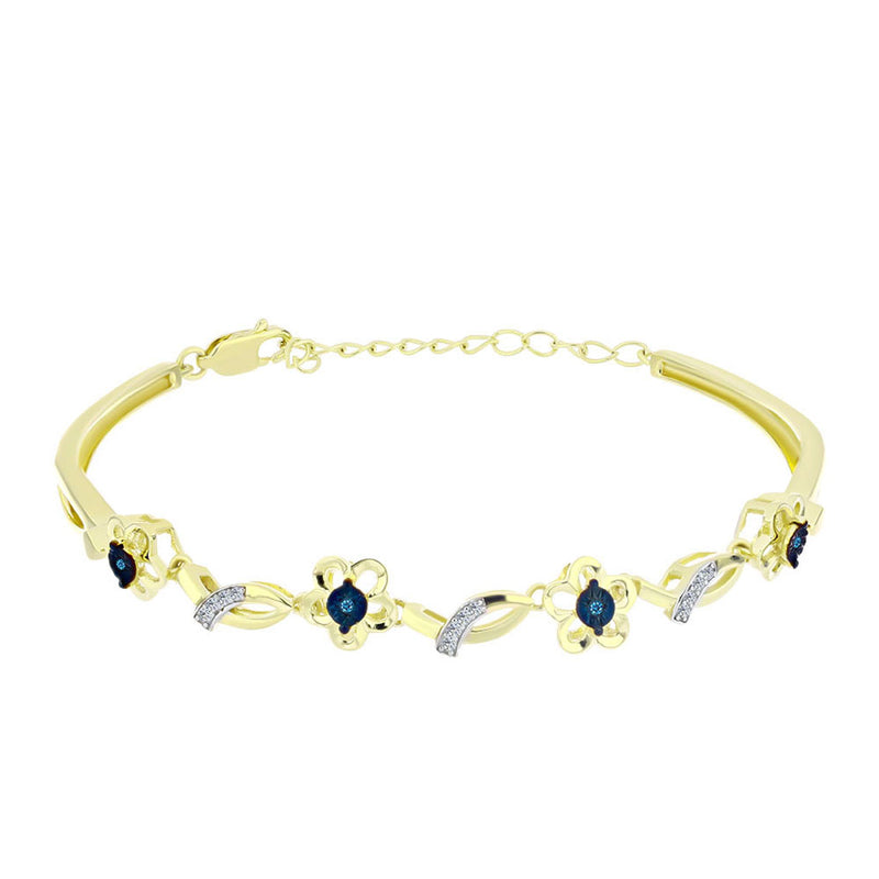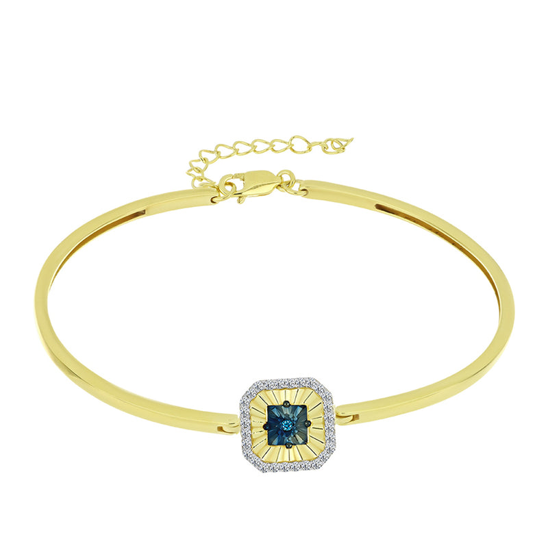 Arannyal Bevont Ezüst Kék Gyémánttal és Fehér Gyémánttal