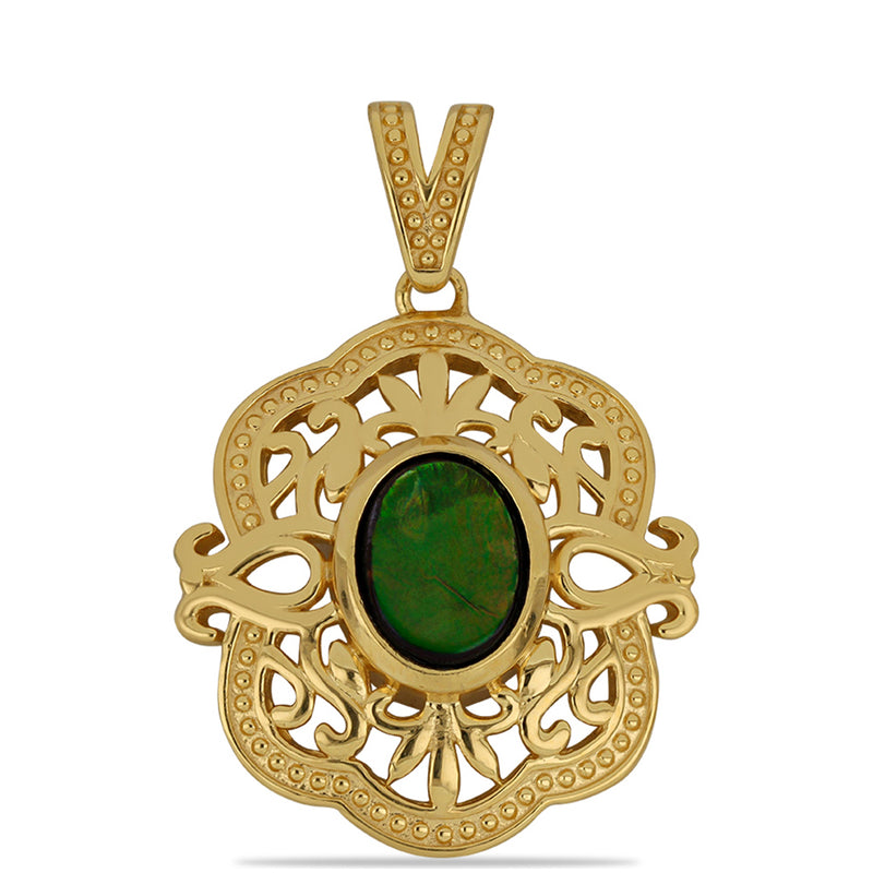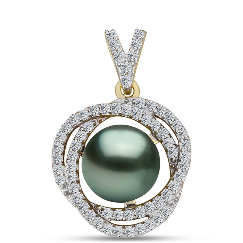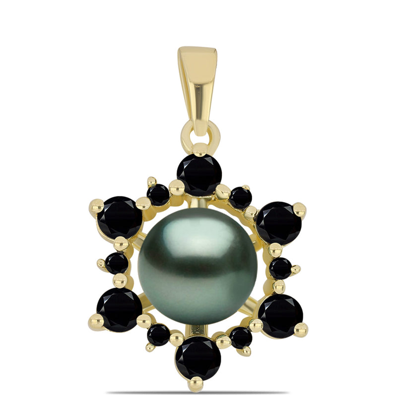 Arannyal Bevont Ezüst Medál "Tahiti-zöld" illúzió édesvízi Kagylógyönggyel és Spinellel