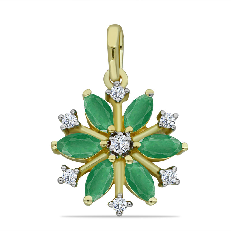 Arannyal Bevont Ezüst Medál Brazil Smaragddal és Természetes Fehér Cirkónnal