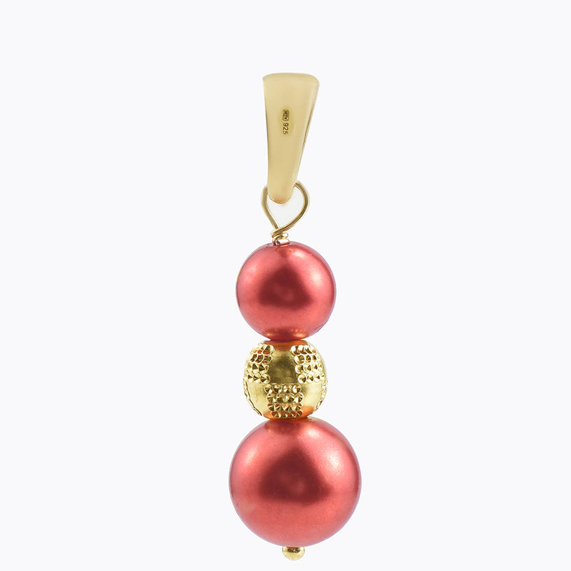 Arannyal Bevont Ezüst Medál Vörös Édesvízi Kagylógyönggyel