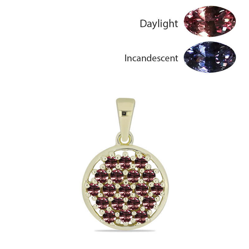 Arannyal Bevont Ezüst Medál Tsivory Színváltós Gránáttal és Fehér Édesvízi Kagylógyönggyel