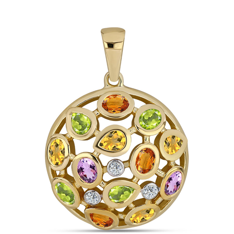 Arannyal Bevont Ezüst Medál Szivárvány Zafírral és Fehér Topázzal