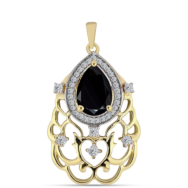 Arannyal Bevont Ezüst Medál Fekete Onixszal és Fehér Topázzal