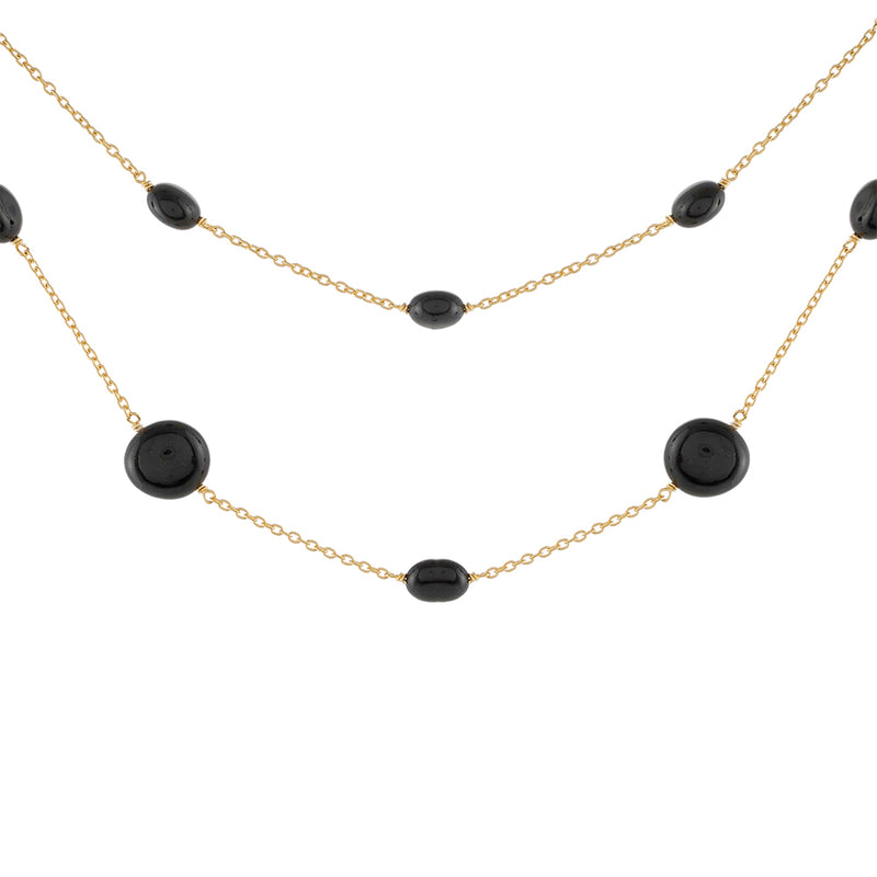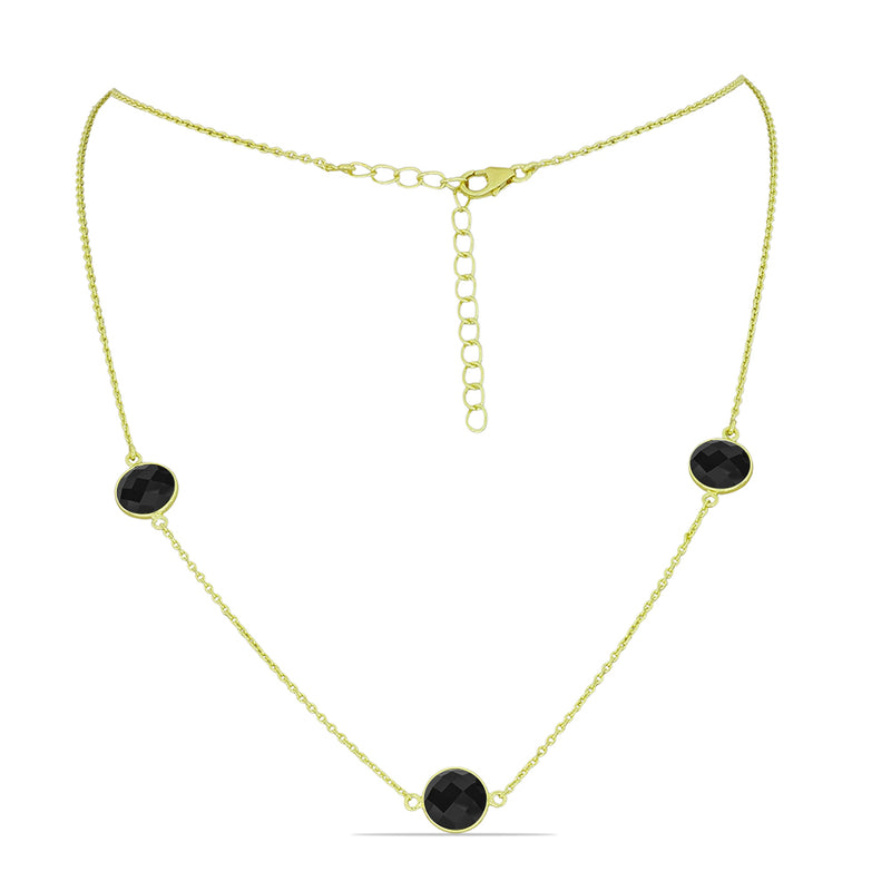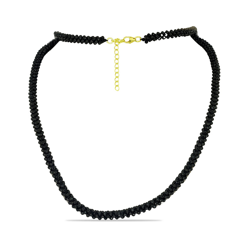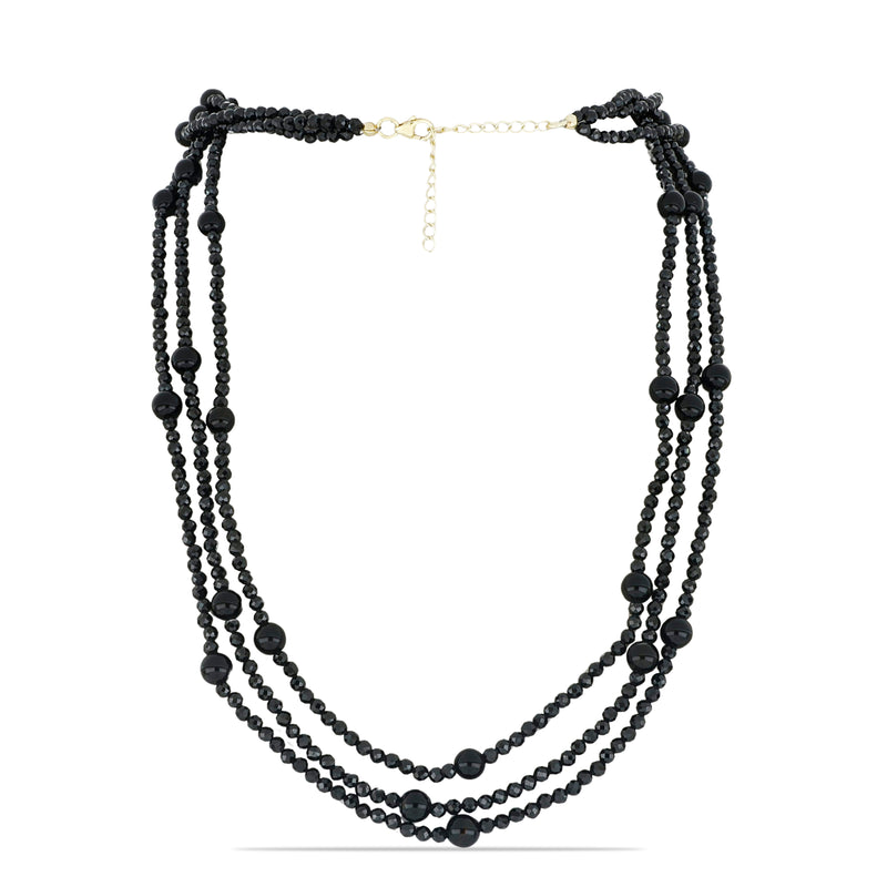 Arannyal Bevont Ezüst Nyaklánc Fekete Spinellel