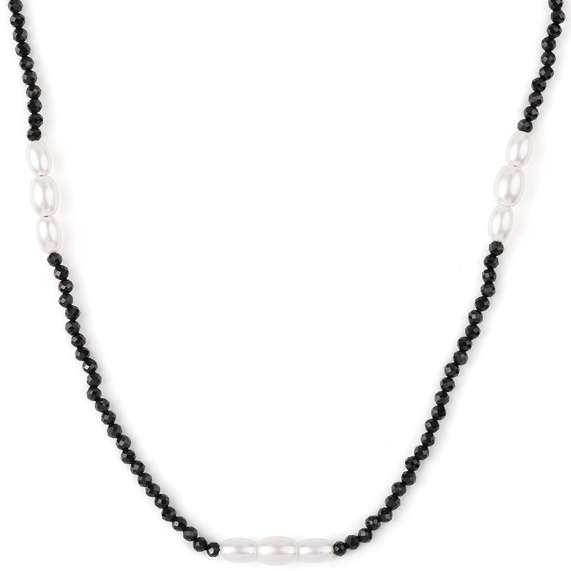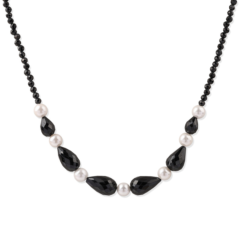 Arannyal Bevont Ezüst Nyaklánc Fekete Spinellel és Fehér Édesvízi Kagylógyönggyel