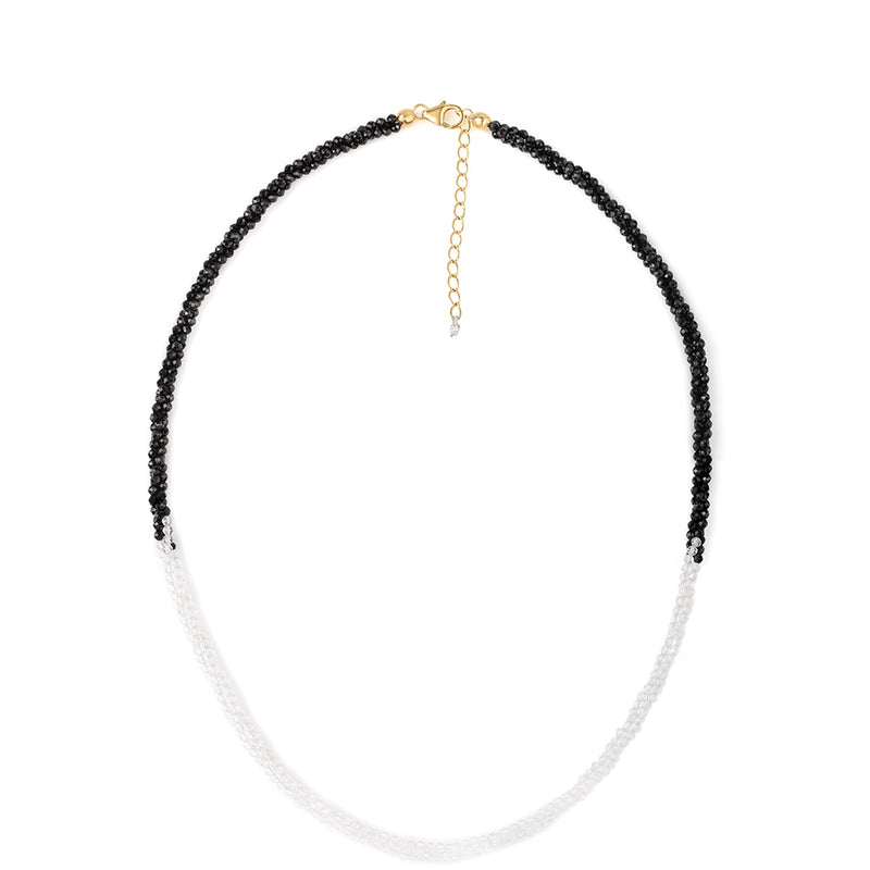 Arannyal Bevont Ezüst Nyaklánc Fekete Spinellel és Fehér Topázzal
