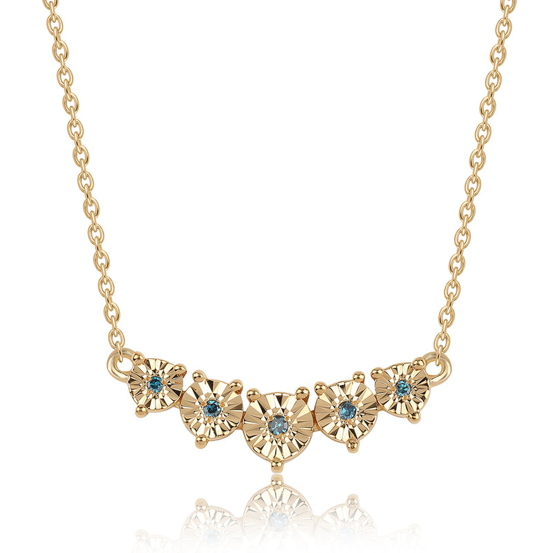 Arannyal Bevont Ezüst Nyaklánc Kék Gyémánttal
