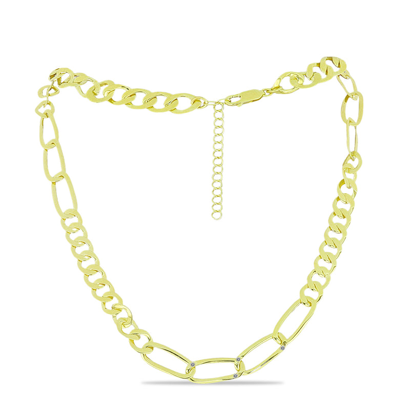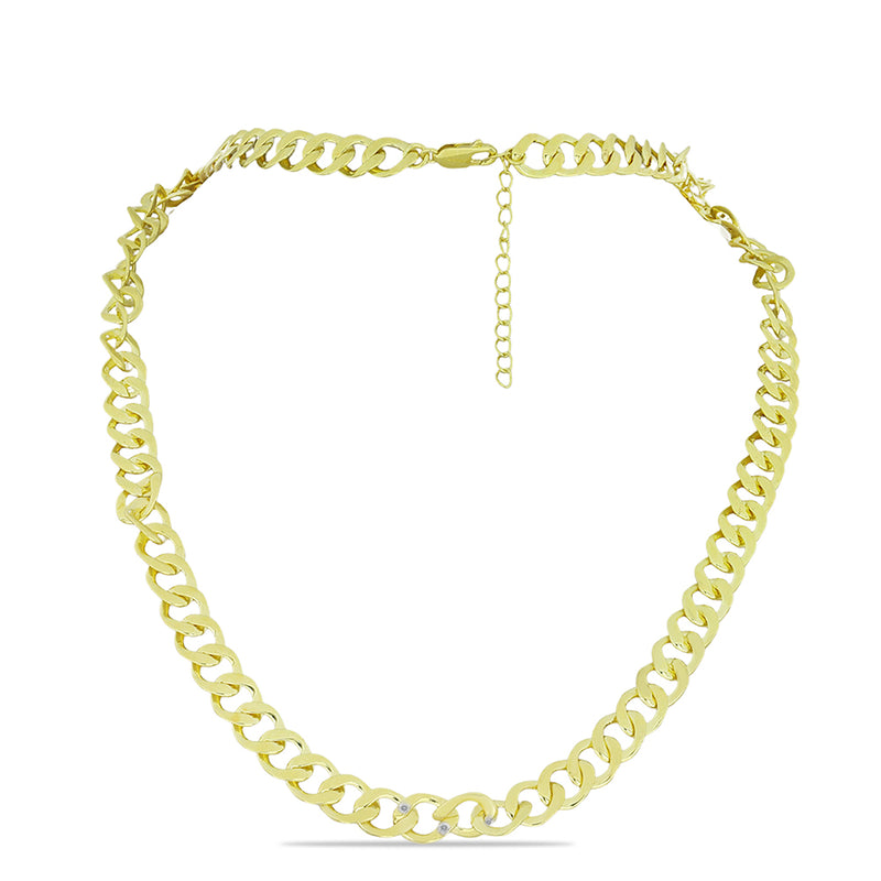 Arannyal Bevont Ezüst Nyaklánc Fehér Gyémánttal