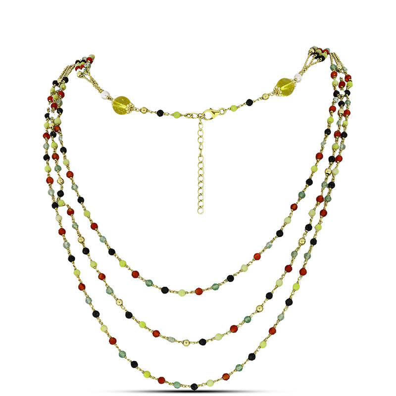 Arannyal Bevont Ezüst Nyaklánc Karneollal és Ural Citrinnel