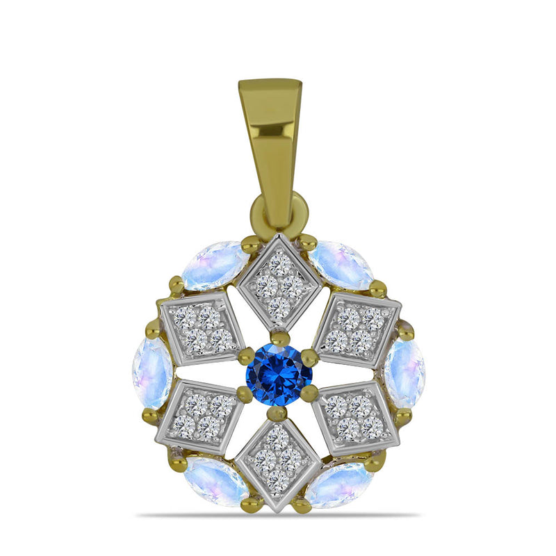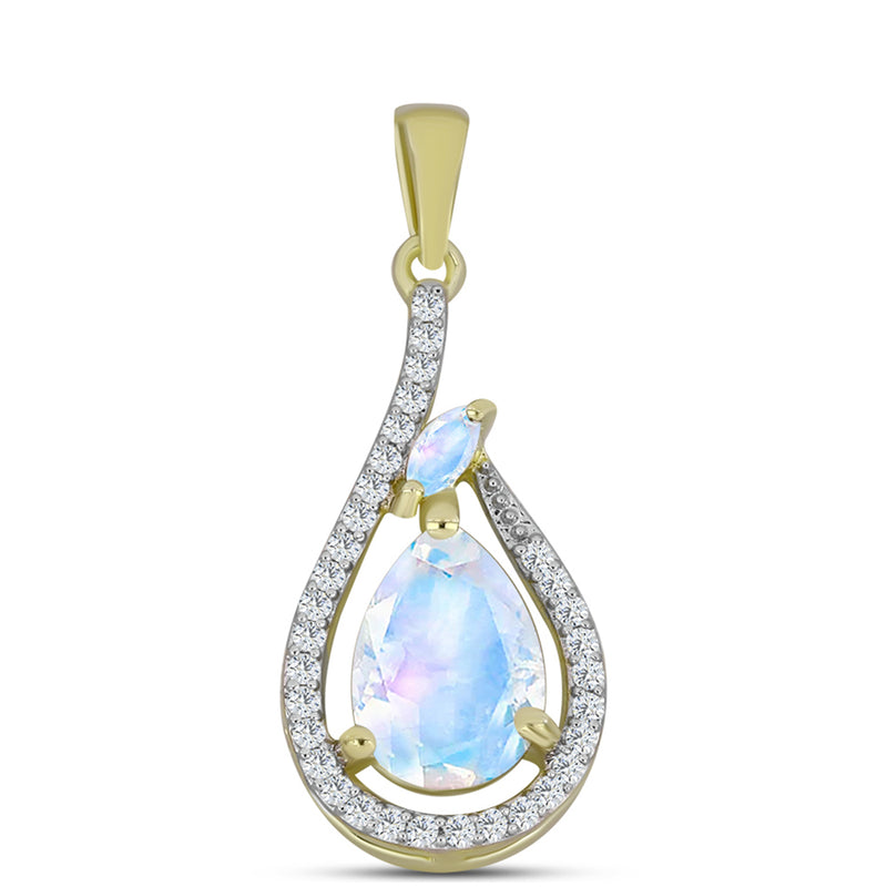 Arannyal Bevont Ezüst Medál Szivárvány Holdkővel és Fehér Cirkónnal