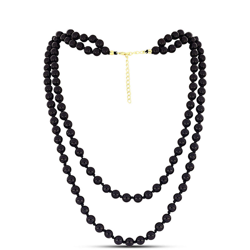 Arannyal Bevont Ezüst Nyaklánc Fekete Onixszal és Fehér Édesvízi Kagylógyönggyel