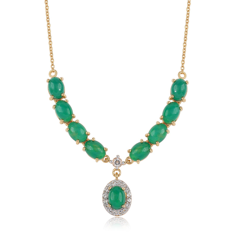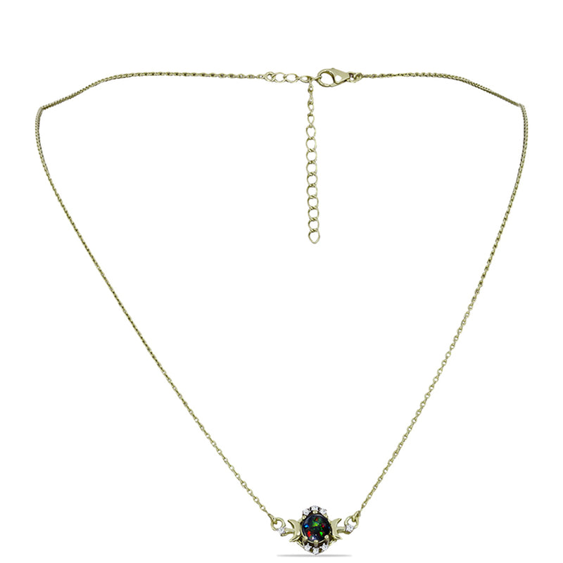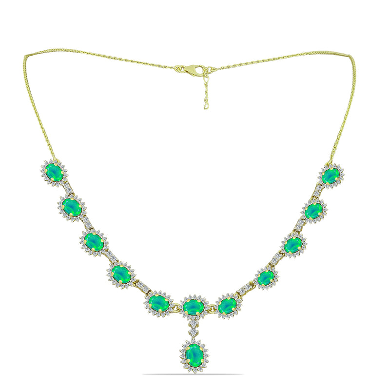 Arannyal Bevont Ezüst Nyaklánc Lega Dembi Zöld Etiópiai Opállal és Fehér Topázzal