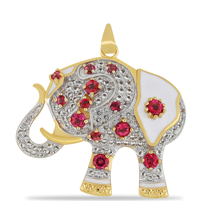 Arannyal Bevont Ezüst Medál Tűzzománccal és Fehér Topázzal