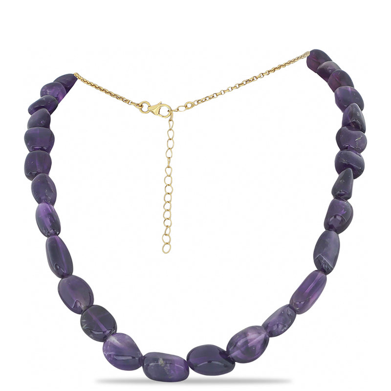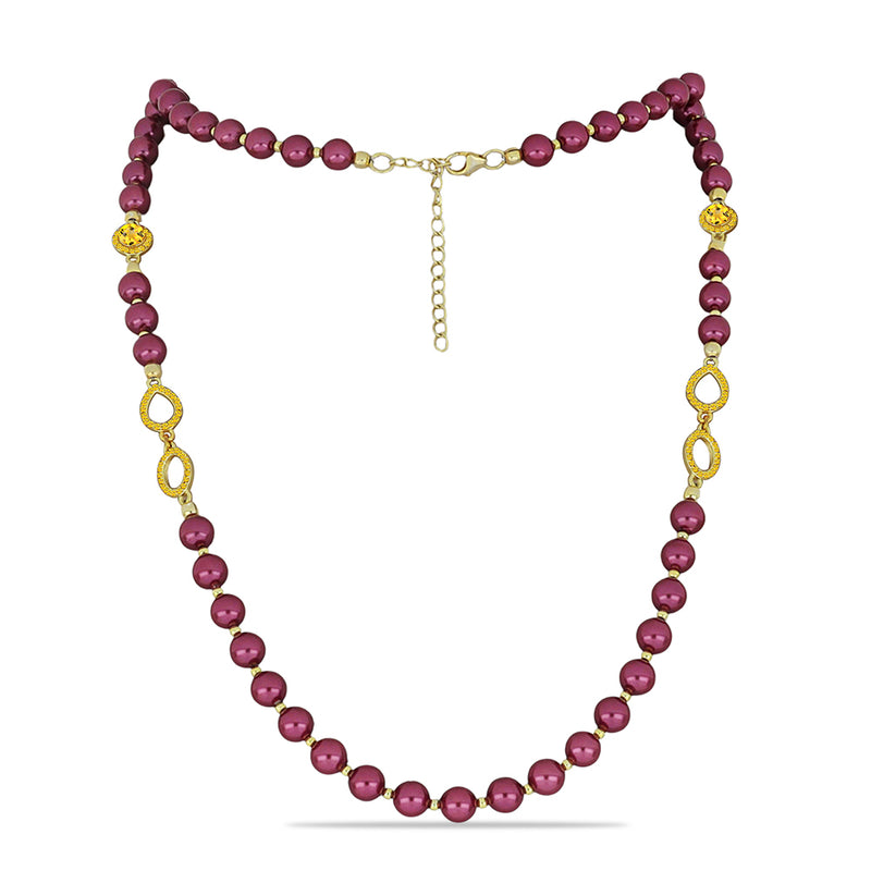 Arannyal Bevont Ezüst Nyaklánc Lila színű Édesvízi Kagylógyönggyel és Ural Citrinnel