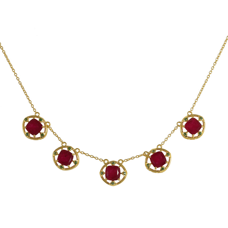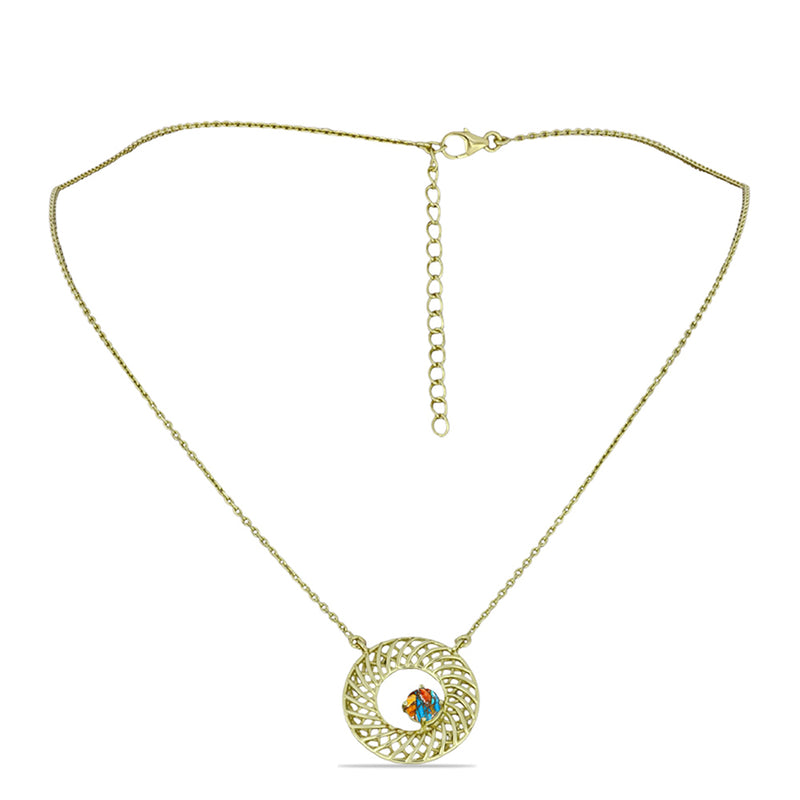 Arannyal Bevont Ezüst Nyaklánc Marokkói Ametiszttel és Etiópiai Neon Pink Opállal