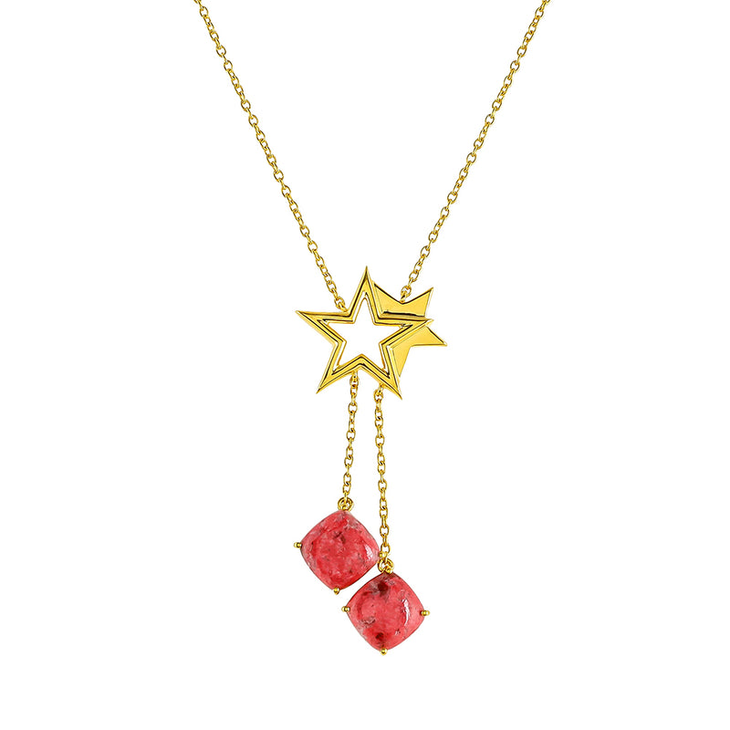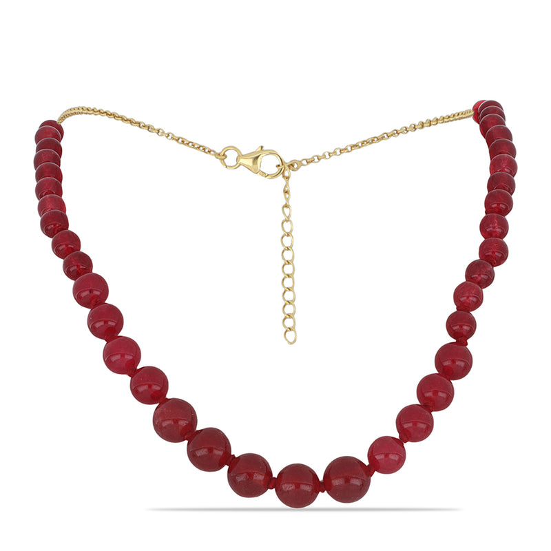 Arannyal Bevont Ezüst Nyaklánc Vörös Acháttal