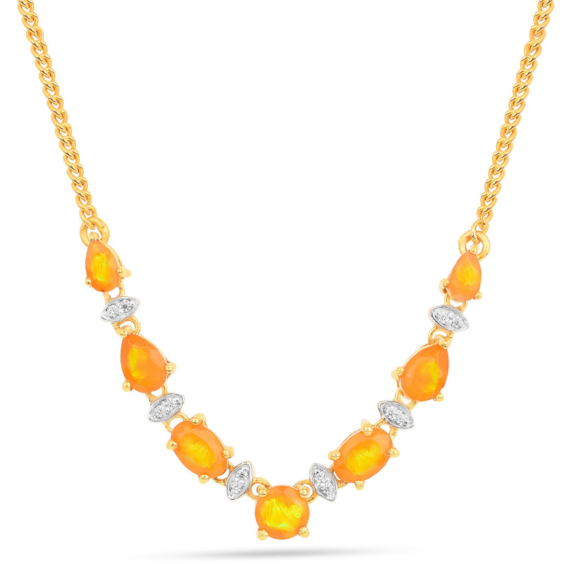 Arannyal Bevont Ezüst Nyaklánc Tűzopállal és Fehér Cirkónnal