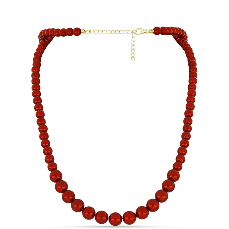 Arannyal Bevont Ezüst Nyaklánc Vörös Édesvízi Kagylógyönggyel