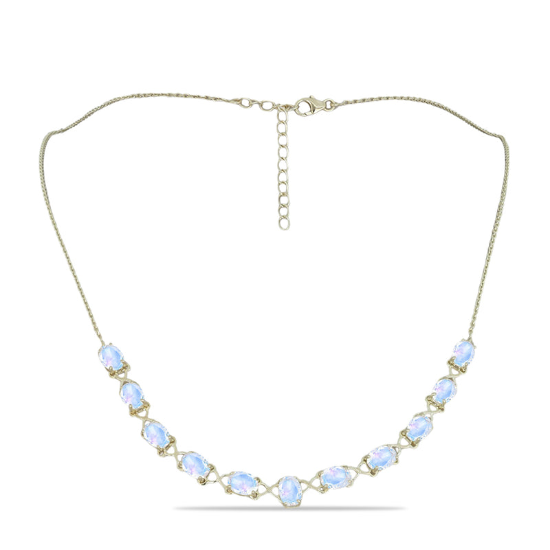 Arannyal Bevont Ezüst Nyaklánc Szivárvány Holdkővel és Fehér Topázzal