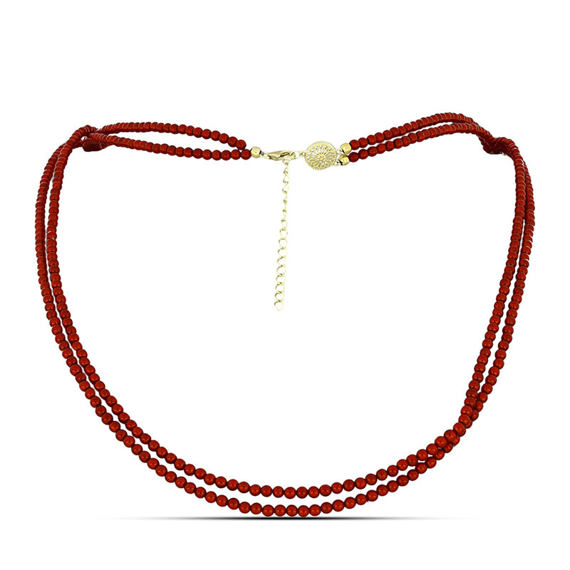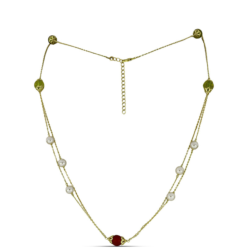 Arannyal Bevont Ezüst Nyaklánc Vörös Édesvízi Kagylógyönggyel és Fehér Édesvízi Kagylógyönggyel