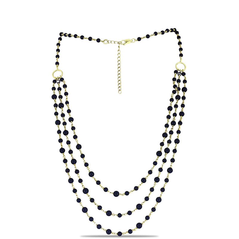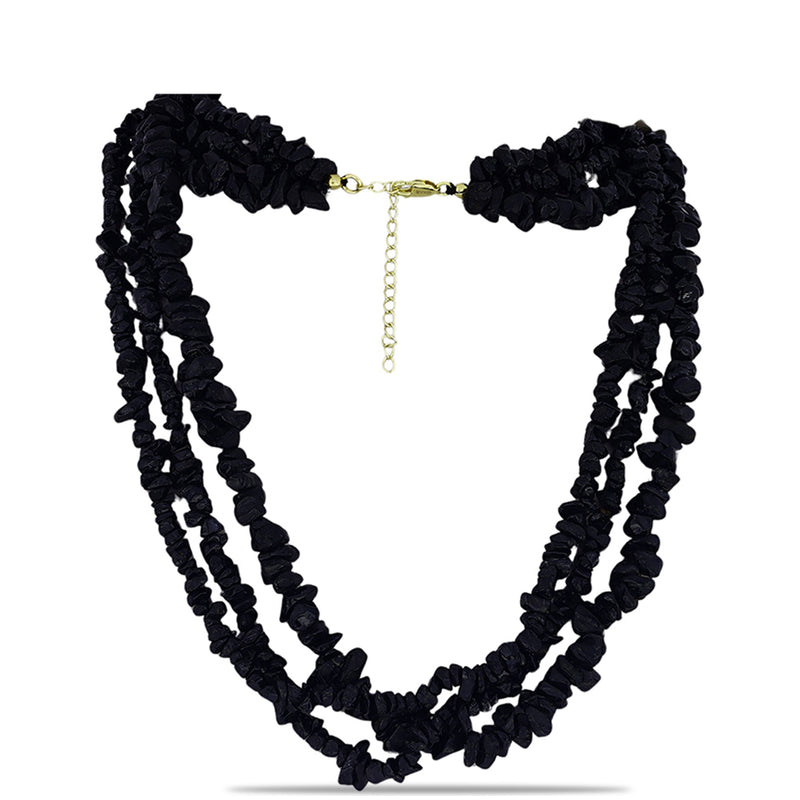 Arannyal Bevont Ezüst Nyaklánc Suwari Fekete Onixszal