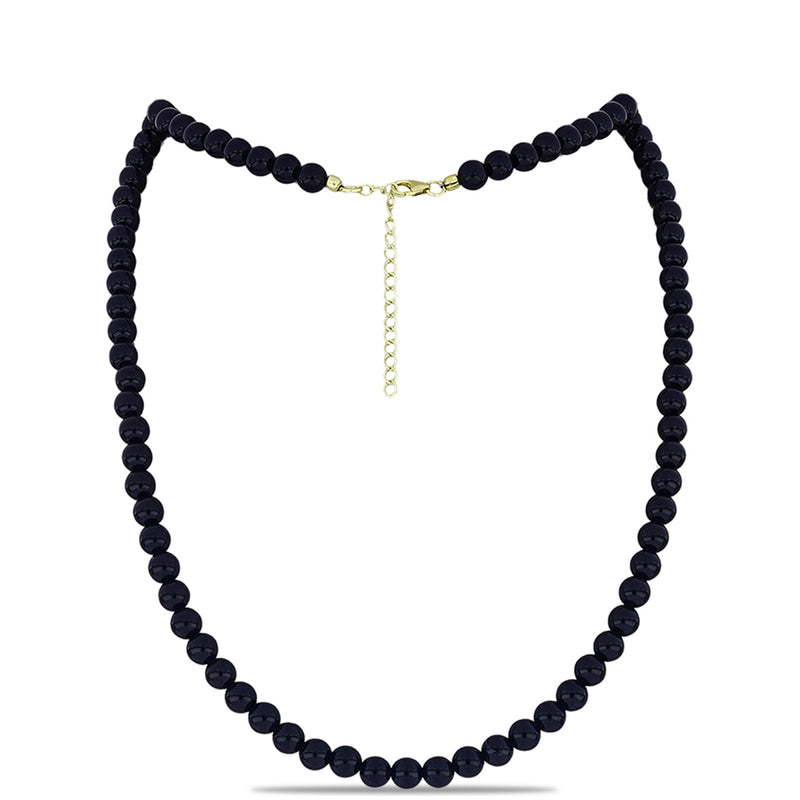 Arannyal Bevont Ezüst Nyaklánc Suwari Fekete Onixszal és Fehér Édesvízi Kagylógyönggyel