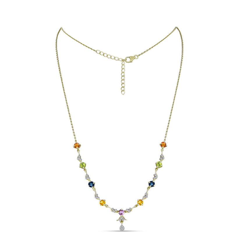 Arannyal Bevont Ezüst Nyaklánc Szivárvány Zafírral és Fehér Topázzal