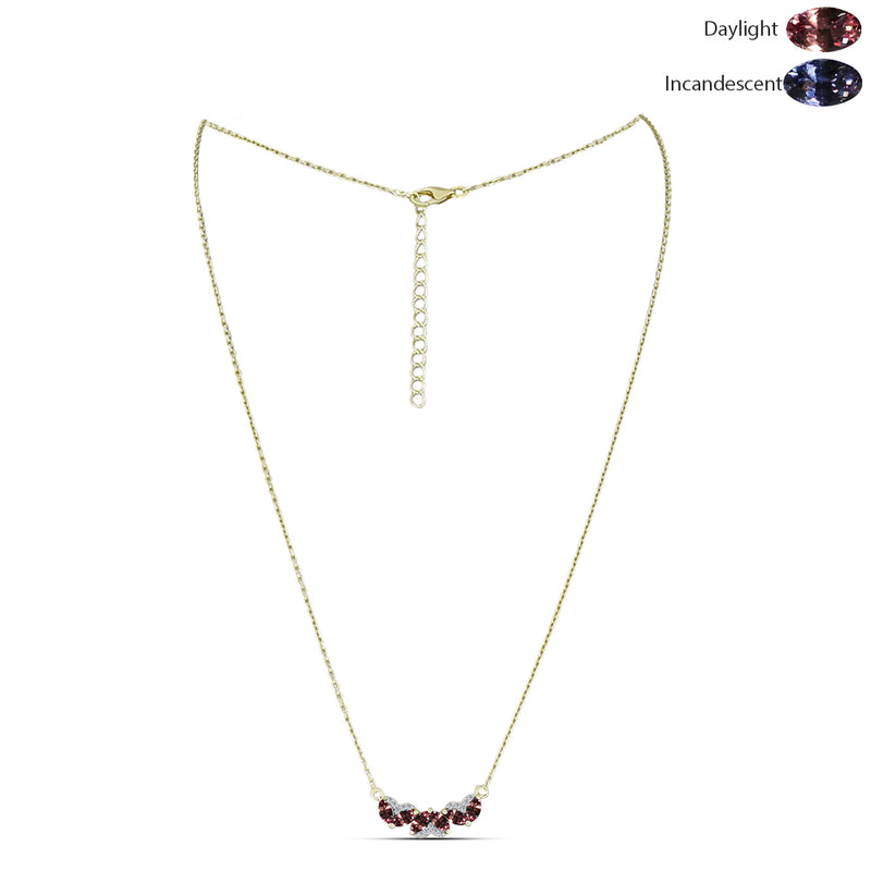 Arannyal Bevont Ezüst Nyaklánc Tsivory Színváltós Gránáttal és Fehér Topázzal