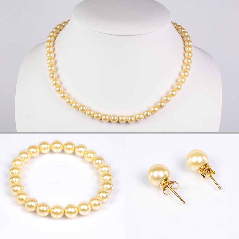 Arannyal Bevont Ezüst Szett Déltengeri Aranyszínű Gyönggyel ( Nyaklánc+Fülbevaló+Karkötő )