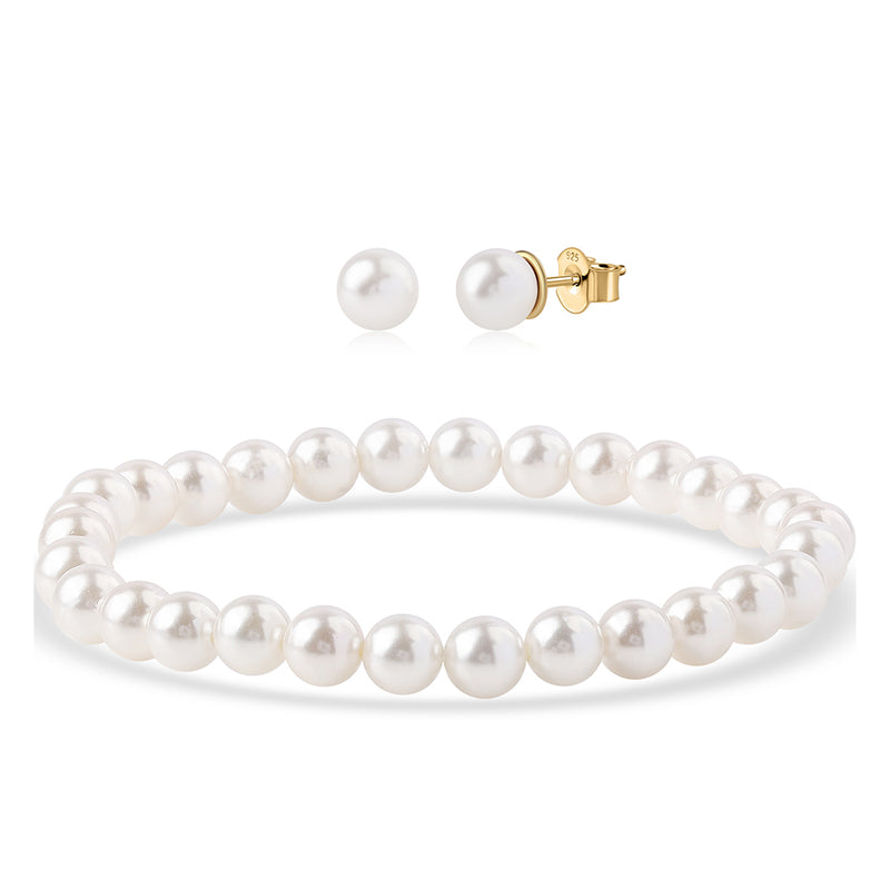 Arannyal Bevont Ezüst Szett Fehér Édesvízi Kagylógyönggyel ( Fülbevaló+Karkötő )