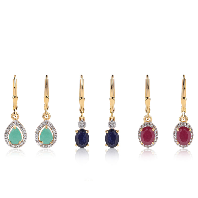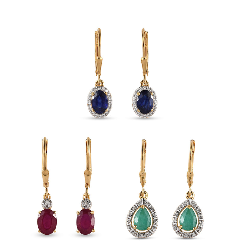 Arannyal Bevont Ezüst Szett Madagaszkári Rubinnal és Brazil Smaragddal ( Fülbevaló )