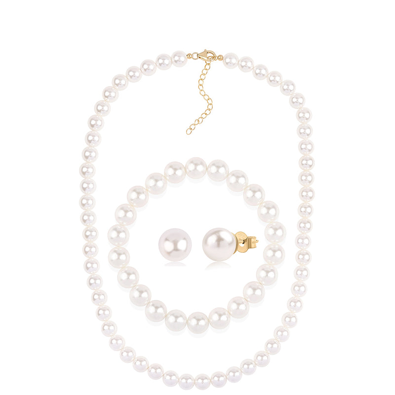 Arannyal Bevont Ezüst Szett Fehér Édesvízi Kagylógyönggyel ( Nyaklánc+Fülbevaló+Karkötő )