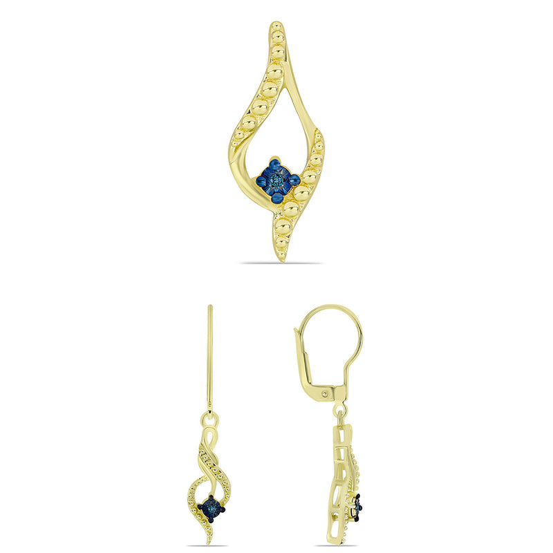 Arannyal Bevont Ezüst Szett Kék Gyémánttal ( Fülbevaló+Medál )