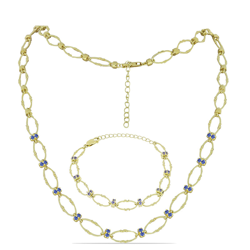 Arannyal Bevont Ezüst Szett Tanzanittal ( Nyaklánc+Karkötő )