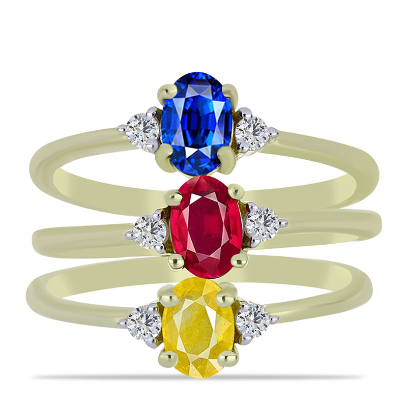 Arannyal Bevont Ezüst Szett Mozambiquei Rubinnal és Kék Gyémánttal ( Gyűrű )