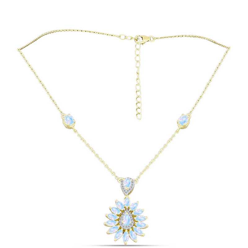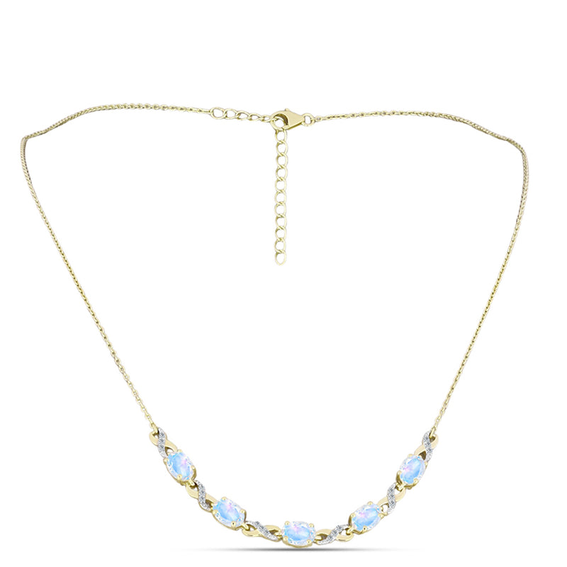 Arannyal Bevont Ezüst Nyaklánc Szivárvány Holdkővel és Fehér Topázzal
