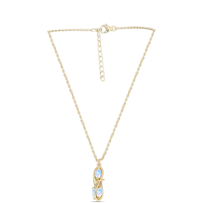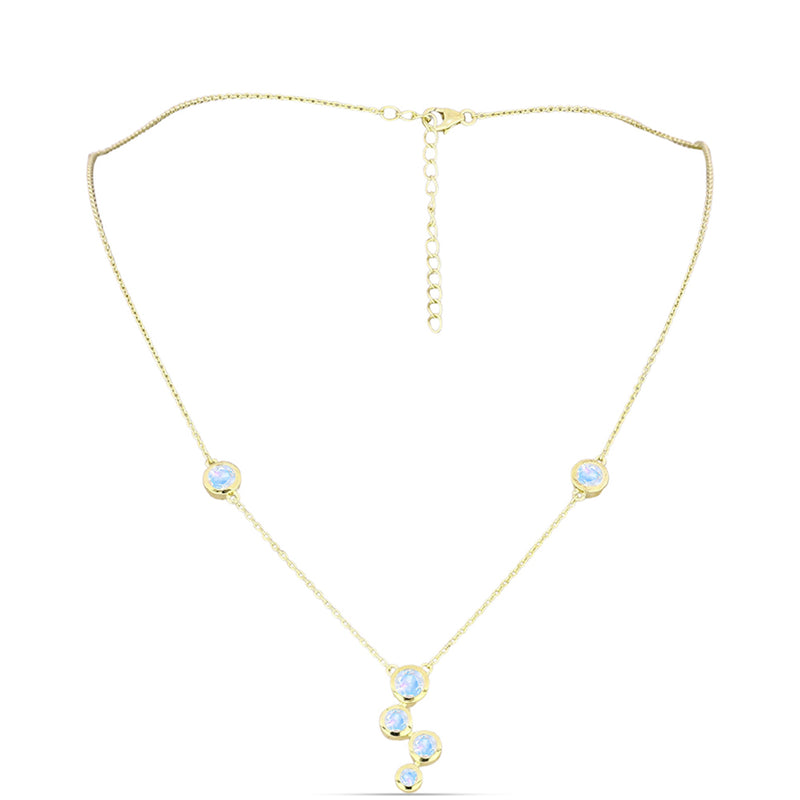 Arannyal Bevont Ezüst Nyaklánc Szivárvány Holdkővel
