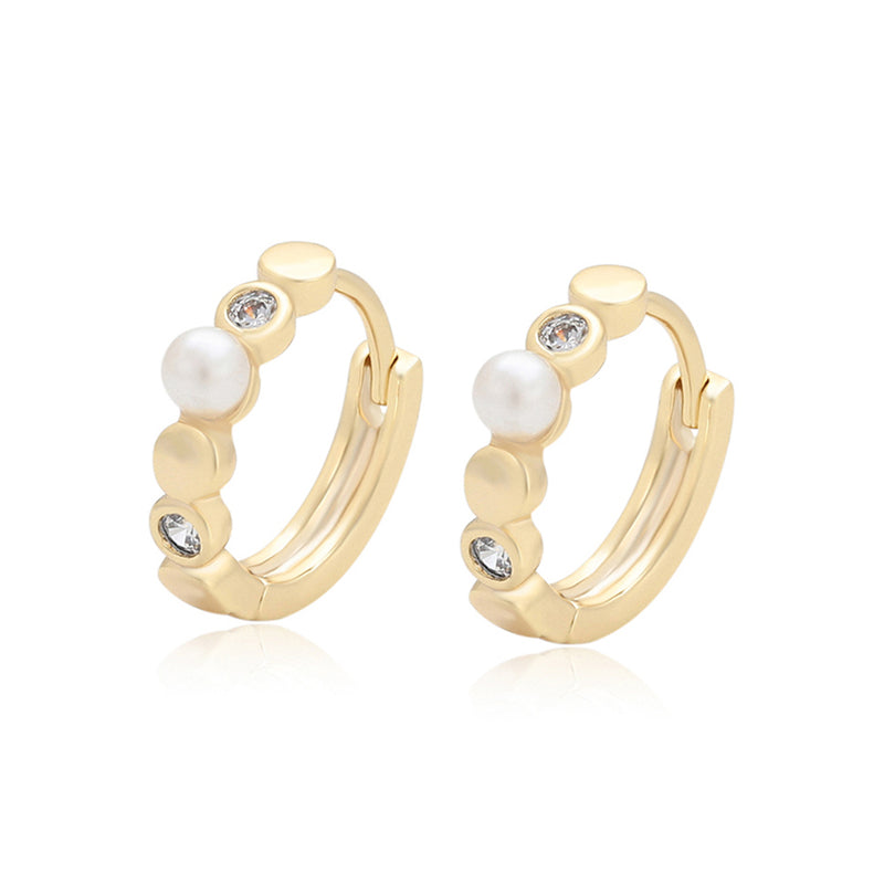 Arany tónusú Emporia Ötvözetű Fülbevaló Gyönggyel és Fehér Emporia® Kristállyal