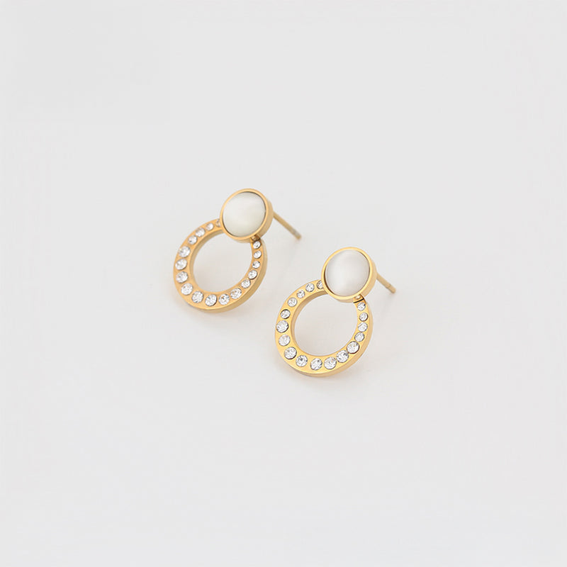 Arany tónusú Emporia Ötvözetű Fülbevaló Fehér Emporia® Kristállyal és Üveggyönggyel