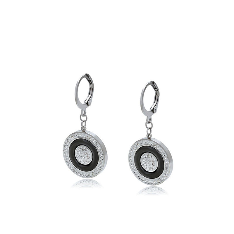 Arany tónusú Emporia Ötvözetű Fülbevaló Fehér Emporia® Kristállyal és Fekete Emporia® Kristállyal